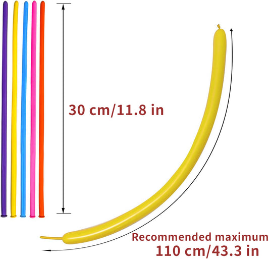 100pcs 260 Balloons,Twisting Animal Balloons for Birthdays Carnival Wedding Party Decorations,with Pump,Tutorial,Pen